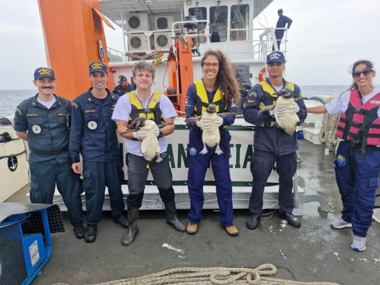 A soltura aconteceu em alto-mar, cerca de 60 km da costa do Rio de Janeiro, em uma área próxima à Corrente do Brasil — corrente oceânica quente e salina que auxilia o deslocamento natural dos pinguins rumo às regiões reprodutivas na Patagônia argentina e chilena.